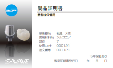 当センターで加工した加工物に関しましては、患者様へ製品証明書を発行しております。