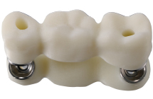- インプラントブリッジは2ピースタイプです。チタンベースと各種補綴材料の2ピースを製作いたします。ワンピースタイプの製作は行なっておりませんので、あらかじめご了承をお願いいたします。